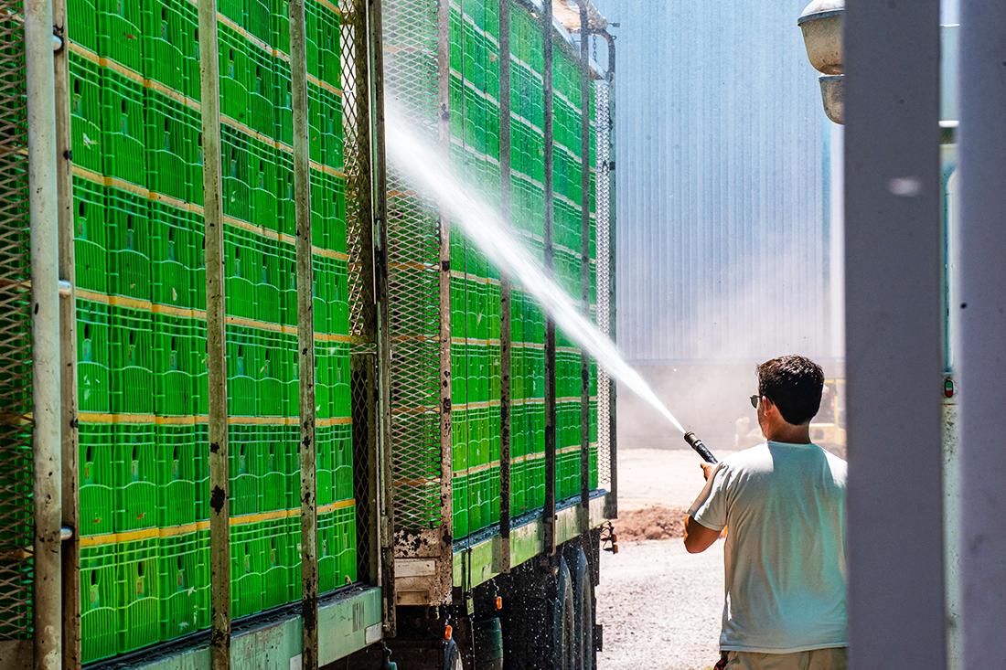 - Las tapas de las jaulas deben estar cerradas para evitar que los pollos se escapen o se caigan durante el transporte.