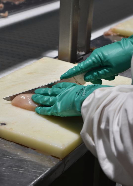 Cuando el pollo llega a la edad y peso requerido es trasladado a la planta de faena, dentro de la misma, el laboratorio de calidad controla todos los lotes que ingresan a diario, asegurando una adecuada trazabilidad de cada producto final. Dentro de la planta de faena por lotes van ingresando las aves a las diferentes áreas de procesado, para luego dar lugar al envasado de pollo entero, trozado y menudencias, todos los productos se empacan en cajas, para su posterior comercialización.